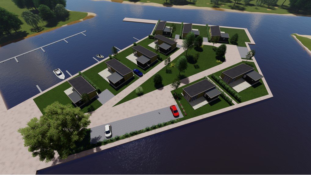 Ruime kavels met eigen ligplaatsen (aantal ligplaatsen varieert).